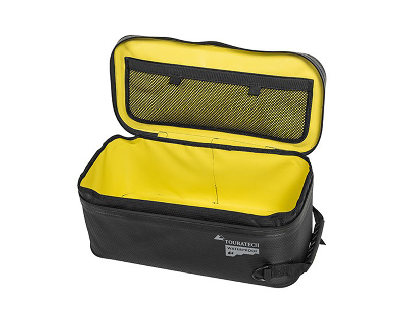 Această geantă impermeabilă pentru capacul cutiei laterale este compatibilă cu toate cutiile Touratech, cu cutiile BMW și cu majoritatea cutiilor originale prevăzute cu ochiuri de prindere. Cu o capacitate de 10 litri, este accesoriul ideal pentru extinderea spațiului de depozitare al sistemului ZEGA.